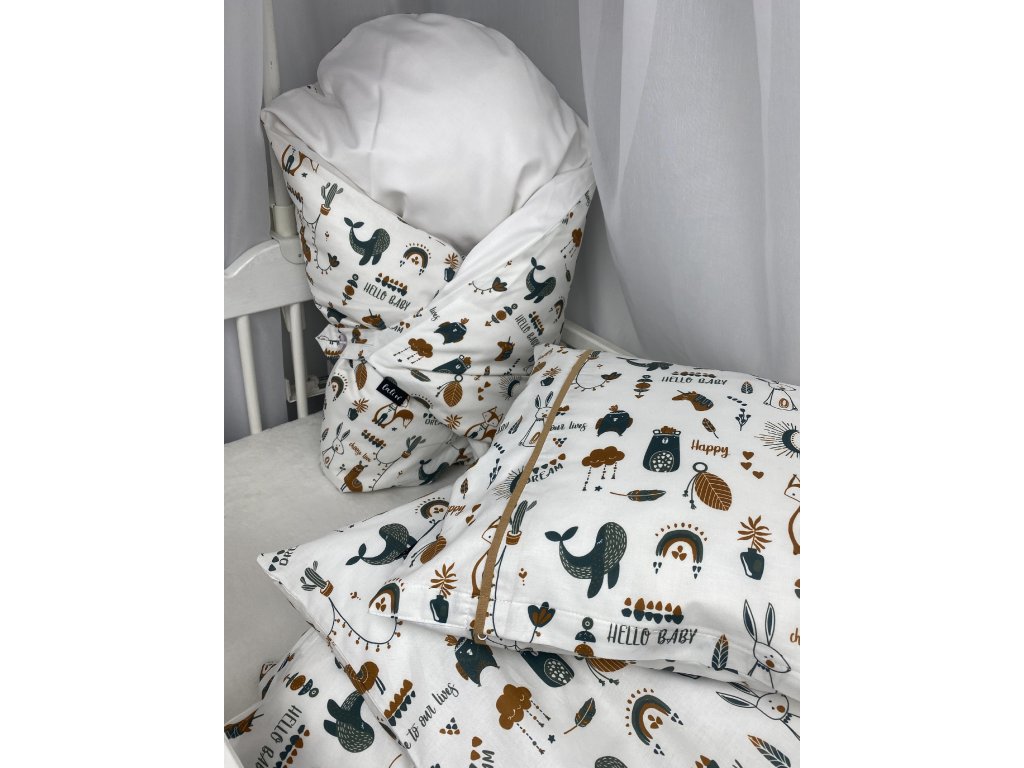 Nádherné povlečení v designu stylových zvířátek s tmavě hořčicovými detaily. Naše povlečení se skvěle hodí k stylovým dřevěným hračkám a jejich barvám. Slaďte postýlku Vašeho děťátka k dokonalosti. Vybrat si můžete také dospělý rozměr. Naše povlečení jsou na zips, což je skvělé a praktické.