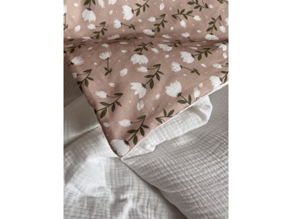 Nádherné povlečení s rozkvetlým vzorem něžnými květin na starorůžovém podkladu. Naše povlečení se skvěle hodí k stylovým dřevěným hračkám a jejich barvám. Slaďte postýlku Vašeho děťátka k dokonalosti. Vybrat si můžete také dospělý rozměr. Naše povlečení jsou na zip, což je skvělé a praktické.