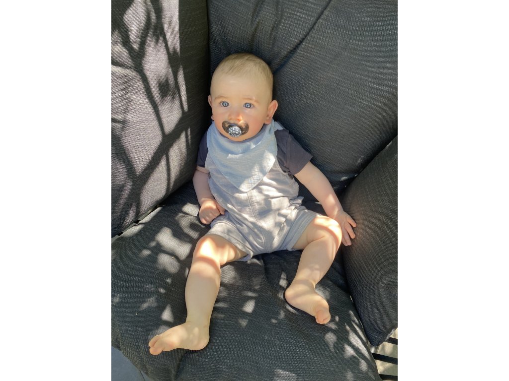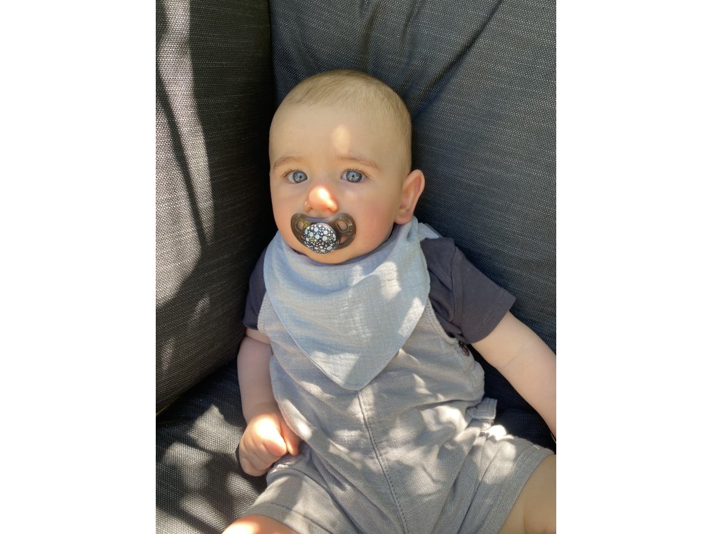 Bryndáček z mušelínu poslouží jako stylový doplněk malých miminek a později, při prořezávání zoubků, jako praktický slintáček. Velikost si jednoduše nastavíte pomocí dvou patentků, takže s Vaším děťátkem poroste. Mušelín je velmi savý, přitom lehký, prodyšný a to je to nejlepší, co můžeme jemné pokožce našeho miminka nabídnout. Po vyprání je materiál krásně naducaný a strukturovaný.